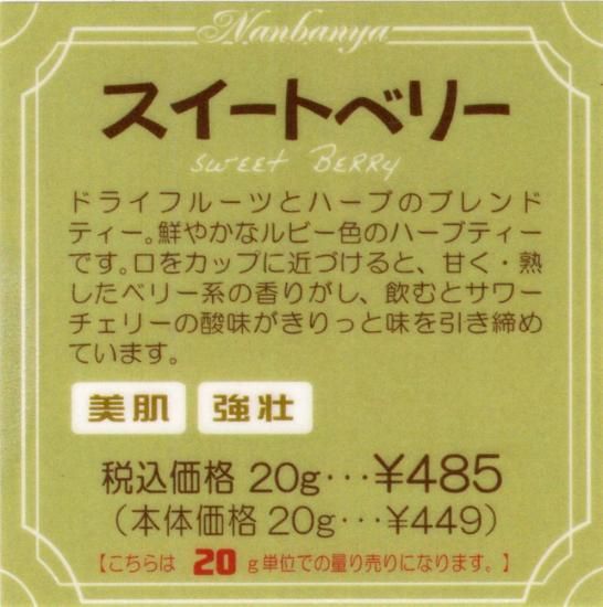 ドライフルーツとハーブのブレンドティーです。熟したベリーの甘い香りと、サワーチェリーやハイビスカスの酸味が心地よく、リフレッシュや疲労回復におすすめです。